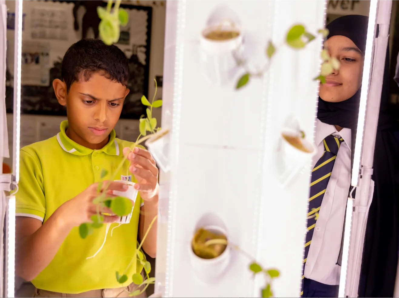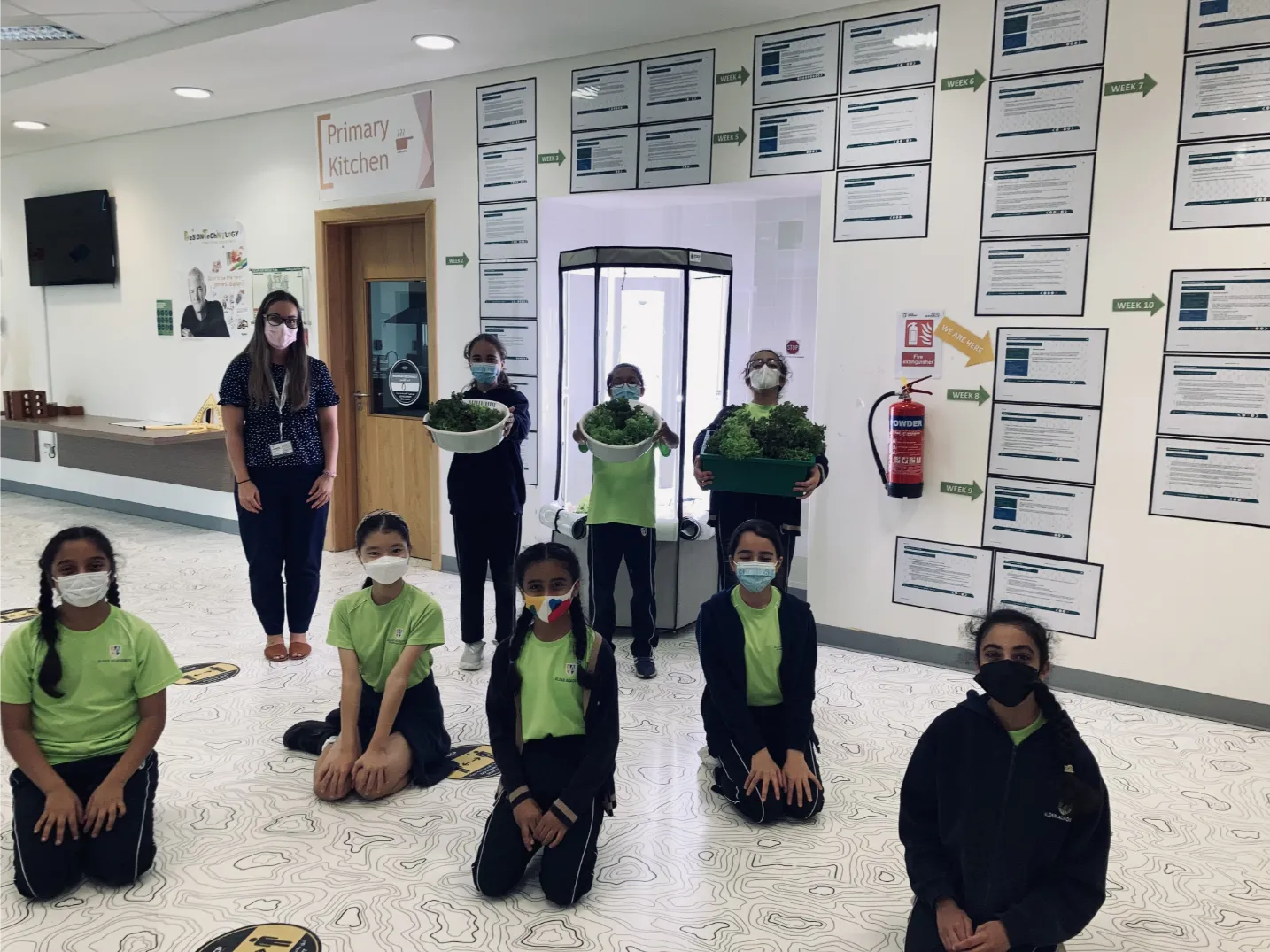 Students are also encouraged to develop an affinity for nature and many initiatives within the school focus on this theme. Luka and the team have implemented the development of aeroponic gardens – with the produce being either used in the school or given to the wider community- reinforcing ideas about reducing food waste. Luka has worked closely with Madar Farms to develop the aeroponic garden and to incorporate learning resources related to sustainable farming into the curriculum. A vegetable garden for younger students was also developed through a relationship with Gracia Farms. Luka also utilised a relationship with Burjeel Hospital to obtain 500 saplings which were planted by lower school Sustainability Ambassadors. The wider school community is regularly invited into the school to see and be involved in the sustainable projects taking place and to be educated about climate change.