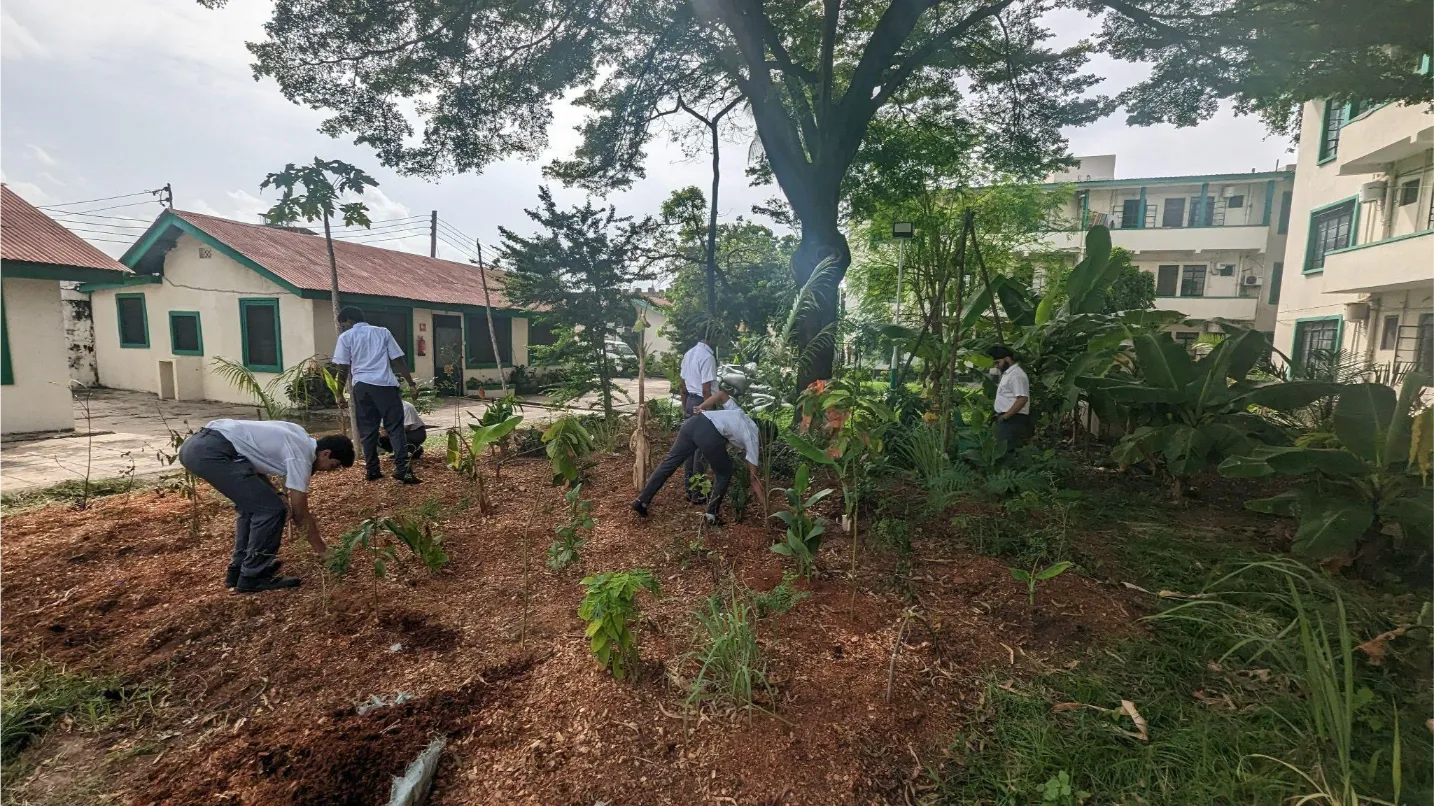 The MicroForest Project was started in November 2022. A small site was chosen for the microforest, and after carefully analysing the soil at the site, a fertiliser was chosen with a composition that would improve the soil condition. A selection of indigenous plant species was also chosen based on the local conditions. After this a volunteer roster of students assisted the staff in the following activities; preparation of the soil and fertiliser; pole erection for creeping plants; planting saplings of different species; and laying wood chips. Watering and other maintenance activities are now also being carried out by volunteer students. The forest was designed to provide food and medicine for the local community and plants were chosen accordingly.