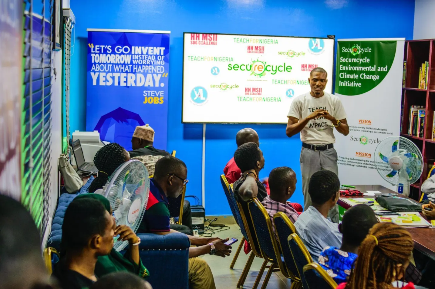 Emmanuel was teaching in a primary school in Ogun State, Nigeria when he observed that his students faced many challenges including poverty and low academic outcomes. Another problem in the area was environmental degradation. This led Emmanuel to start the Securecycle initiative to address these issues and provide quality climate change education.
